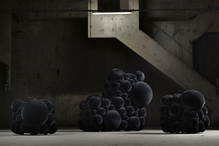 Belgian designer Maarten De Ceulaerβs Mutation Series will be presented this year during Milan Design Week. Each piece is unique, made from foam spheres covered in “a durable rubber or velvet-like finish”. According to My Modern Met, Maarten says βI want to use my work to tell stories, to stir people’s emotions, to tickle their imagination or to make them wonder.β The Willy Wonka of the furniture (furniturart) world, I guess.