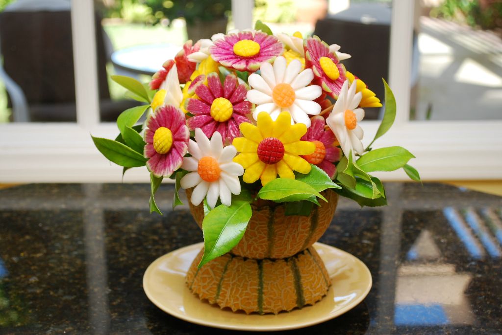 Yep, I was trying to imagine being at the back of the classroom/kitchen and struggling to cut the melon in half, nevermind turn it into a bowl of flowers! 🙂