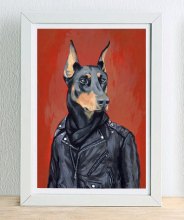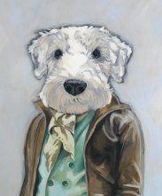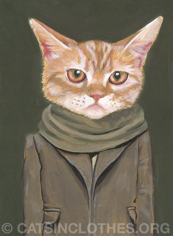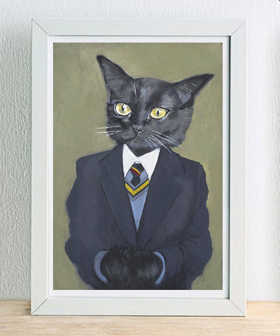 I do like a portrait of an animal in clothes. There’s something about a cleverly matched animal head with a human’s outfit that makes me giggle every time. So, I was delighted to find Heather Mattoon Art on etsy – any shop whose promise is simply, “CATS AND DOGS IN CLOTHES” is alright by me. Here are some of my favourites…