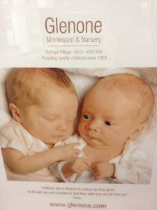 Just doing my bit for Dublin tourism / PR – another beautiful sunny day. Well, the morning was, anyway…A parking spot specifically for a family, outside a supermarket. Well, it’s either a family, or an image from the movie ET.An ad for a nursery – the baby on the right appears to be thinking WHO ARE YOU AND WHY ARE YOU SO CLOSE? (And is it just me, or does he look a bit like Mr Bean?)Latte art by Dublin’s own Ruslan, Irish Latte Art Champion 2012, at the Art of Coffee.
