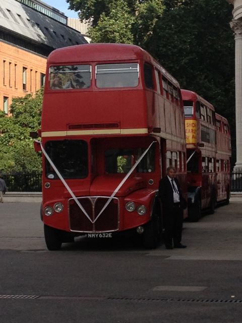 And here’s a great – if a little slow – way for your wedding party to get around London. The driver appeared to be a little underwhelmed by the festivities, but am sure he perked up when the tipsy guests started singing Land of Hope and Glory on their way home from the reception…