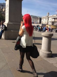 It was actually Fashion Week in London and we passed quite a few wacky looking outfits, but I’m not sure if they were fashionistas or just crazy loons. I think this lady with her incredibly bright pink hair was just a London local going about her business on a sunny day. You go, girl.
