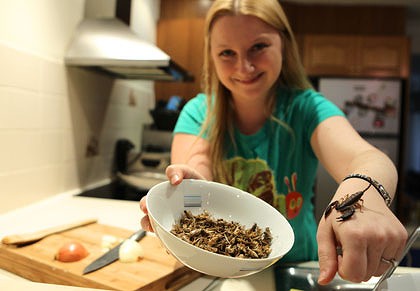 Apparently, Skye runs the Edible Bug Shop and is looking for funding to help expand her range of buggy treats.