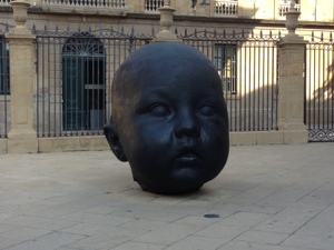 We passed through the bustling city of Pamplona, with some very cute streets & buildings and some very scary giant baby head sculptures.