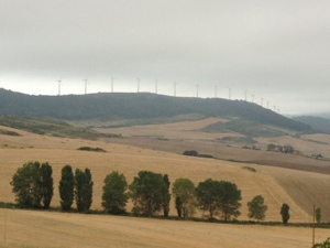 The next morning was overcast and a little cooler, thankfully, and saw us reach the wind farms and wrought iron pilgrims of Alto del Perdon. Our guide book suggested a 19km day, but we said boo to that and walked 26km. Passed through some beautiful olive groves and vineyards along the way to the cute hilltop town of Cirauqui. Where the church bells toll every half an hour – right through the night. And our hostel was right across the square, so no danger of losing track of time!